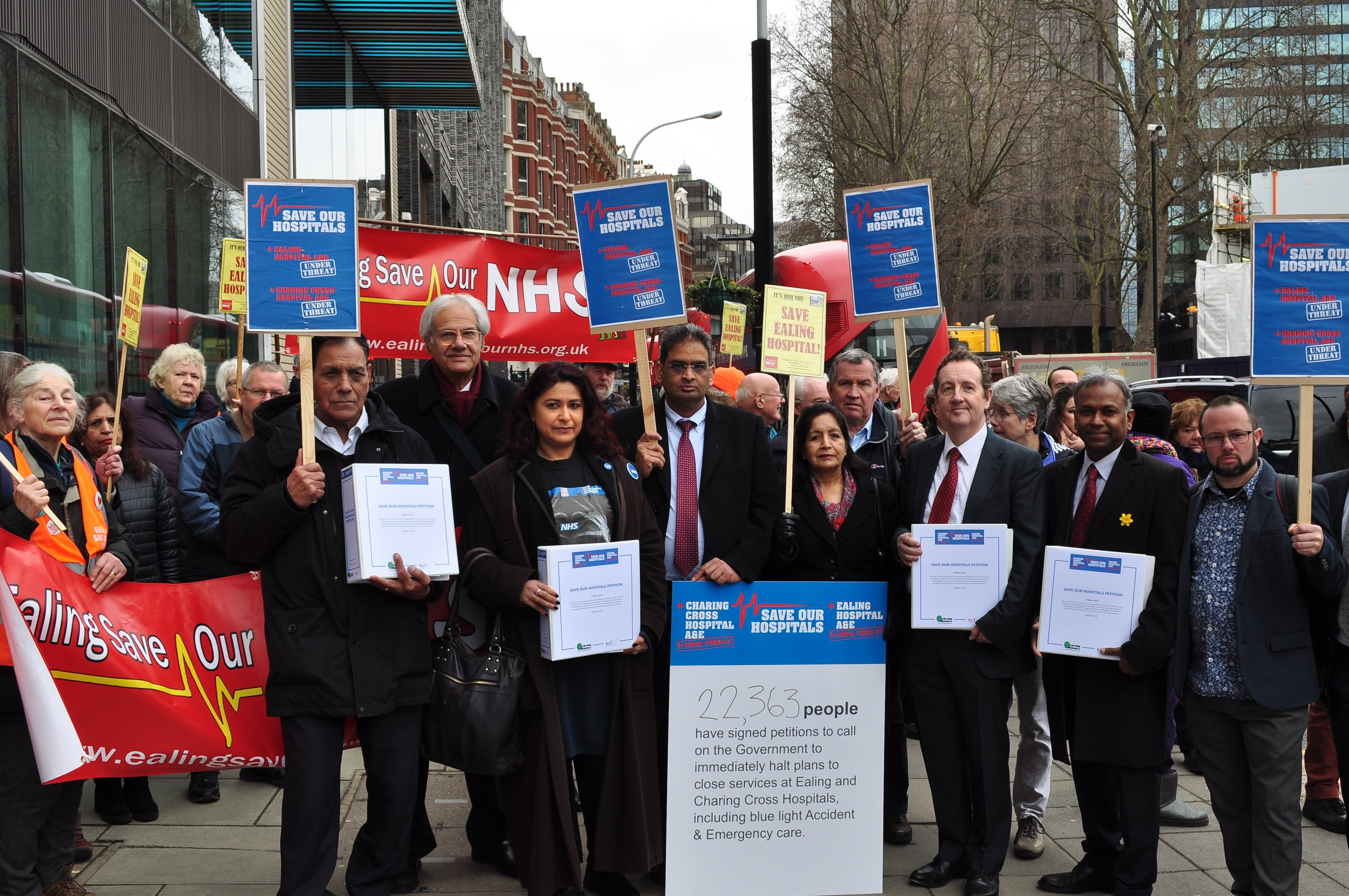 A petition signed by 22,363 residents against plans to close Accident and Emergency (A&E) departments at Ealing and Charing Cross hospitals is being handed to the Department of Health today (Friday, 9 March).